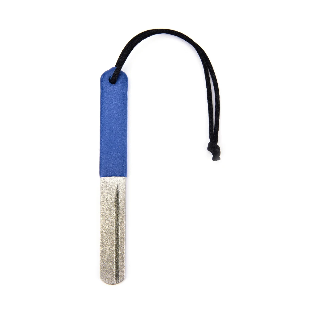 أرغب في شراءمعلومات اضافية عالية الجودة الأزرق 2 الوجهين الأخدود الماس الصيد هوك شحذ شص مبراة صندوق معالجة الصيد معدات الصيد